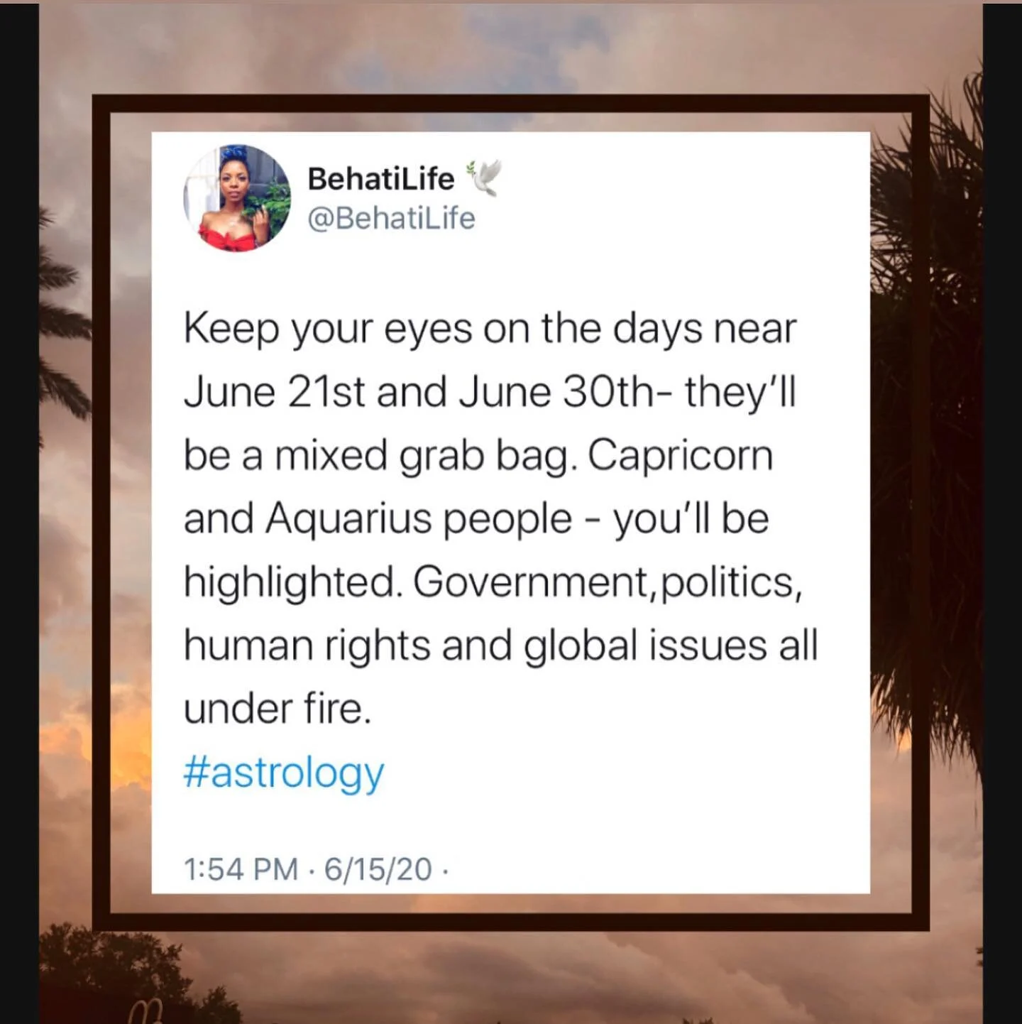 BehatiLife Podcast is now here! Weekly conversations involving astrology predictions, high vibrational living, conspiracies, and more!